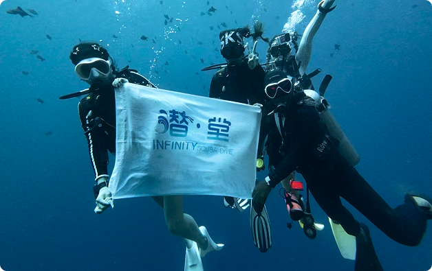 Infinity Scuba Dive Centre (in Chinese, “Qian Tang”潜堂) reflects the very essence of Mataking’s waters—revealing a shade no photograph can truly capture. A crystal-clear blend of blue and green shimmers under the sunlight, stretching endlessly beneath the surface. More than just a dive centre, we are a diving school—guiding you step by step into a safe and unforgettable experience, while inspiring a deeper love for the ocean and a commitment to its conservation.